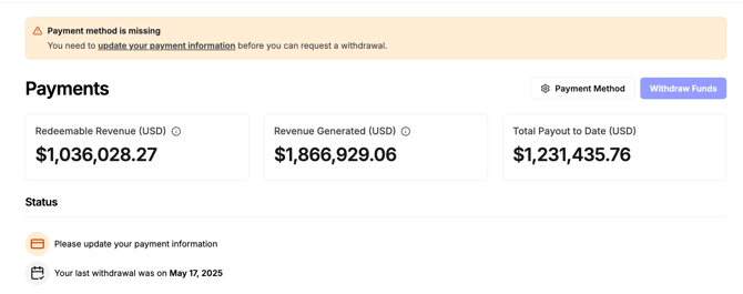 You've made sure your payment information is up-to-date, and you request a payout.